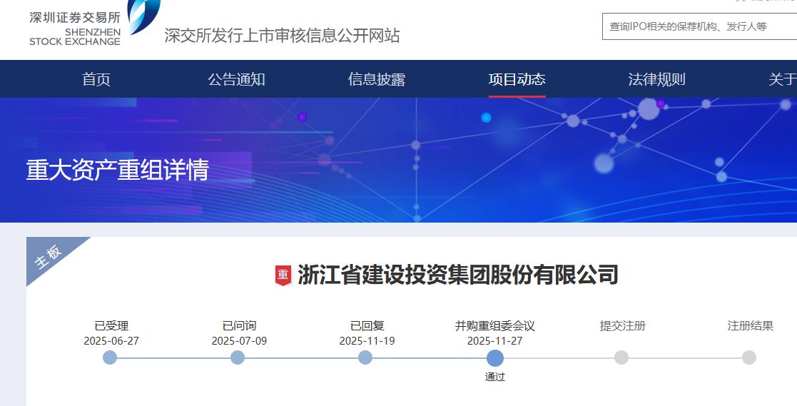 浙江建投拟以12.83亿元收购三项资产的计划获得深圳证券交易所批准,中金公司出资。